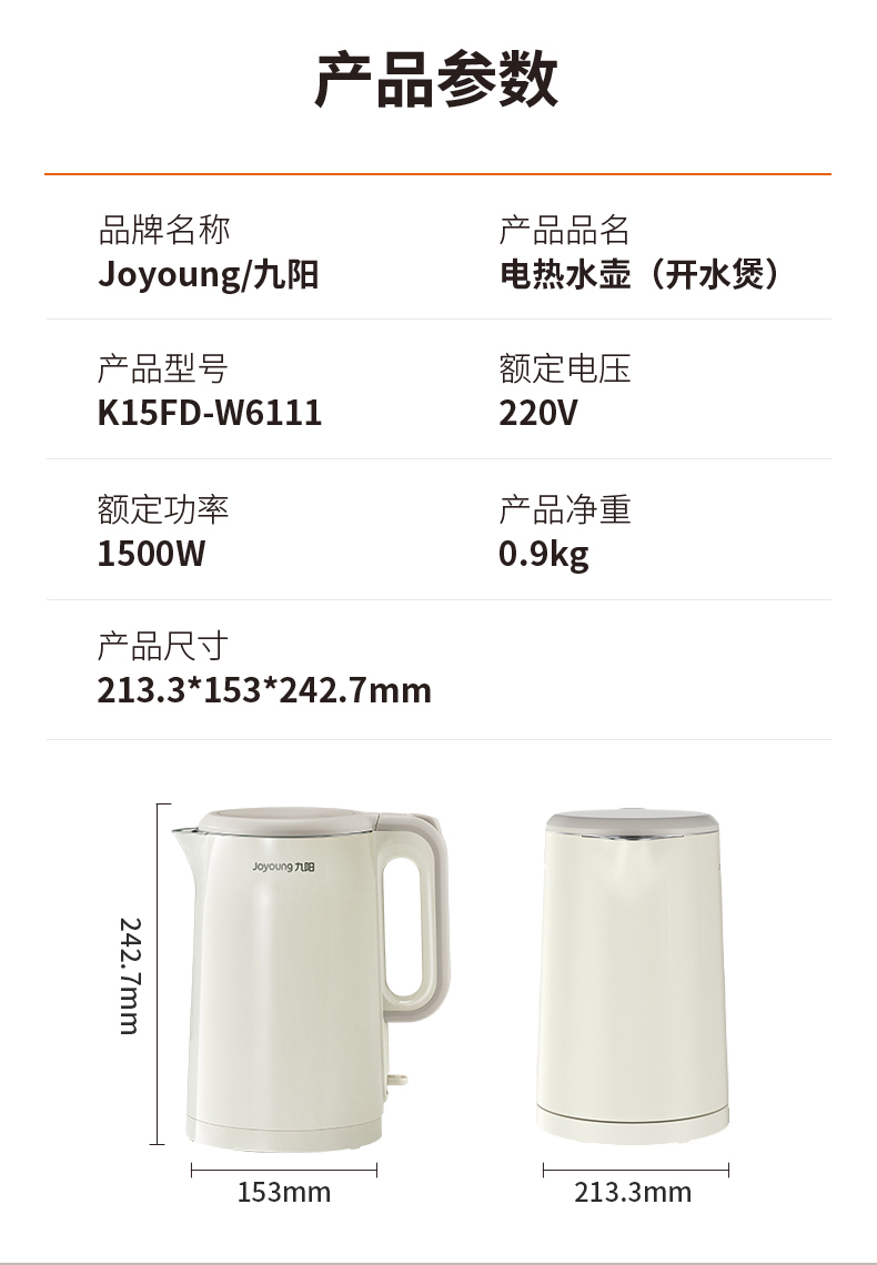九阳 电热水壶 K15FD-W6111